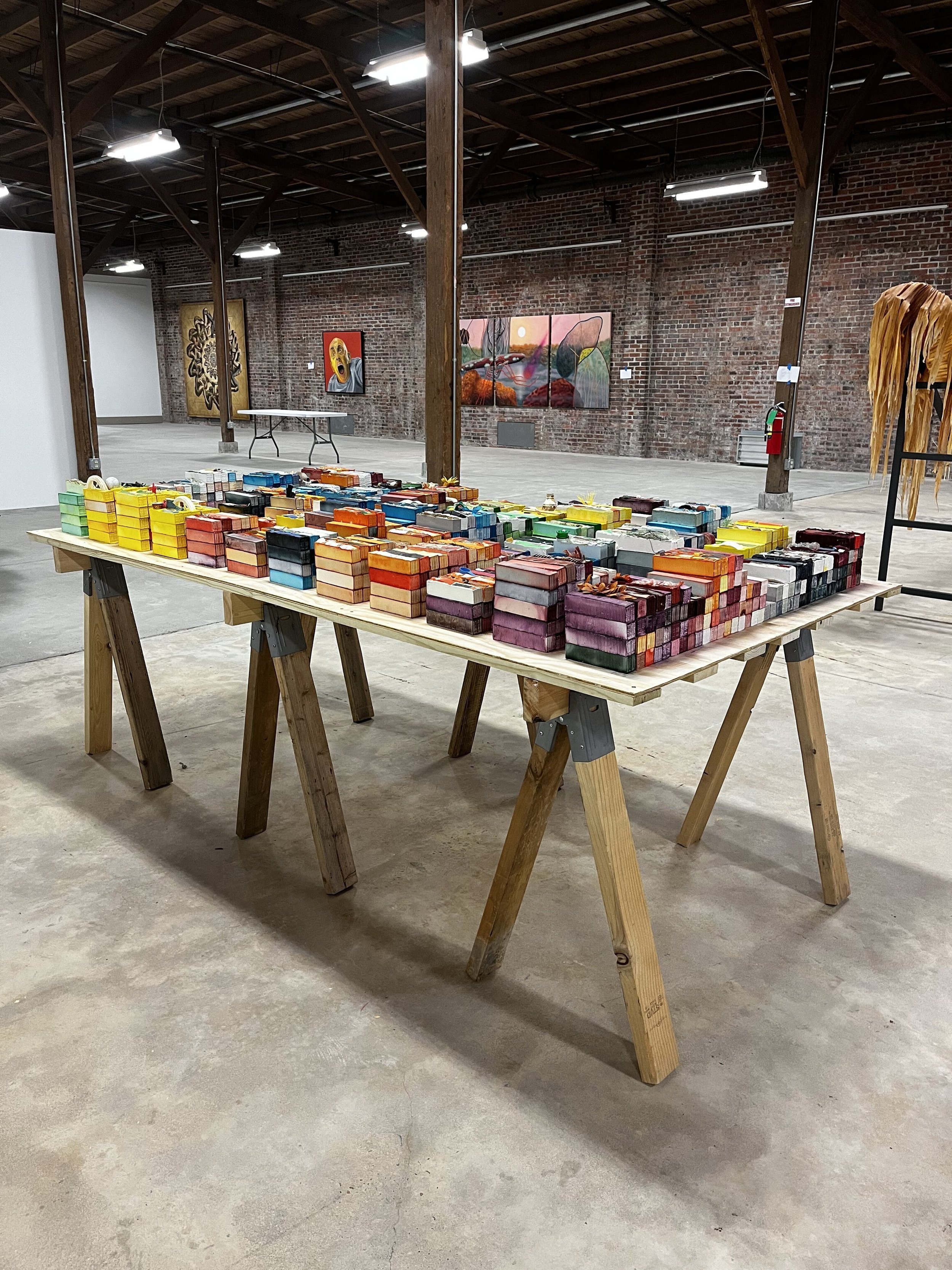 Stack Collapse is a resistance to mass production, capitalism, and consumerism as driving forces of climate crisis through handiwork, care, and repair. It is a coping mechanism for a catastrophic climate event through miniaturization, and a recognition of toxic nostalgia. It is a historical record of my region through trash, and a contemplation of global economics and cultural norms. It is a lot of things.